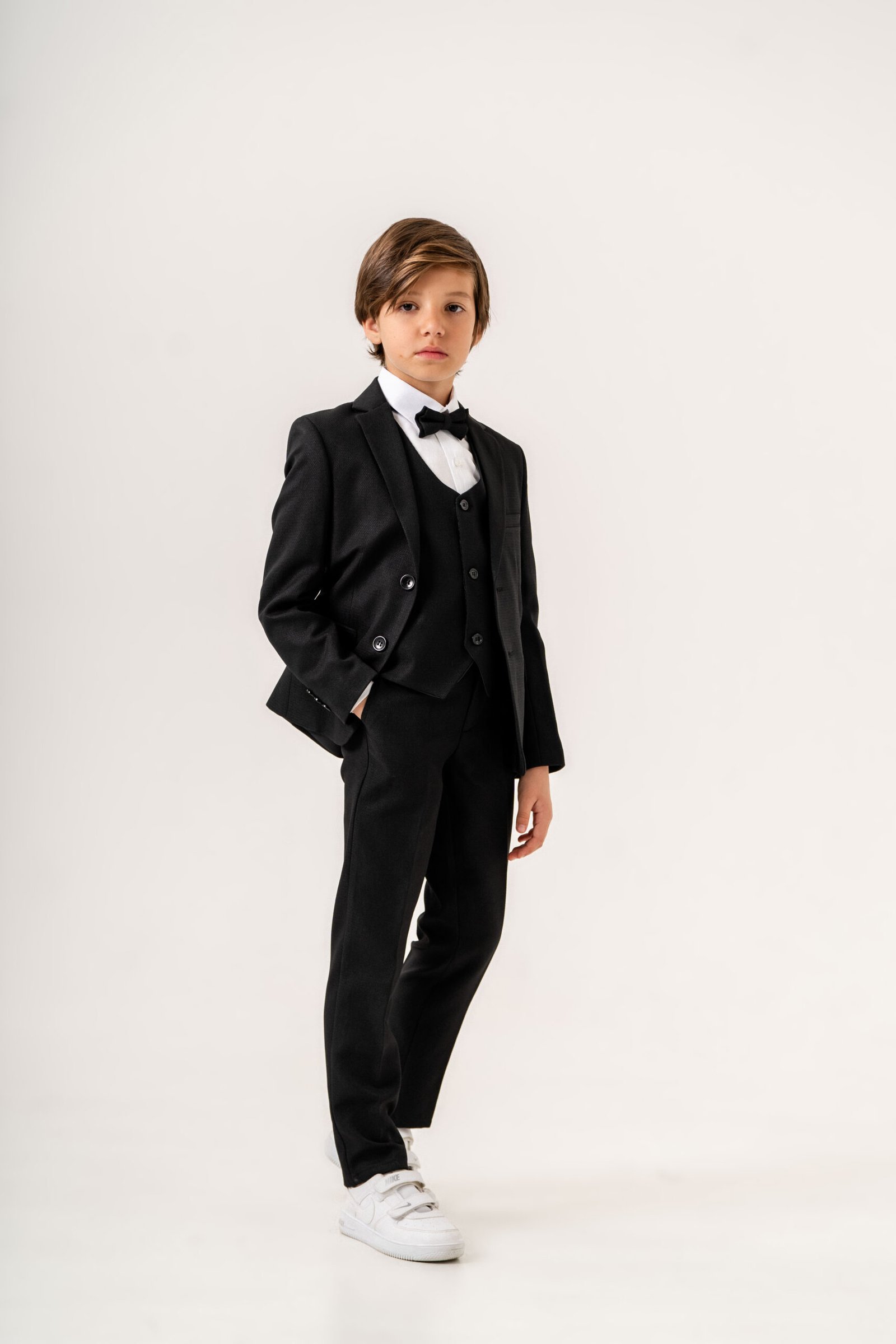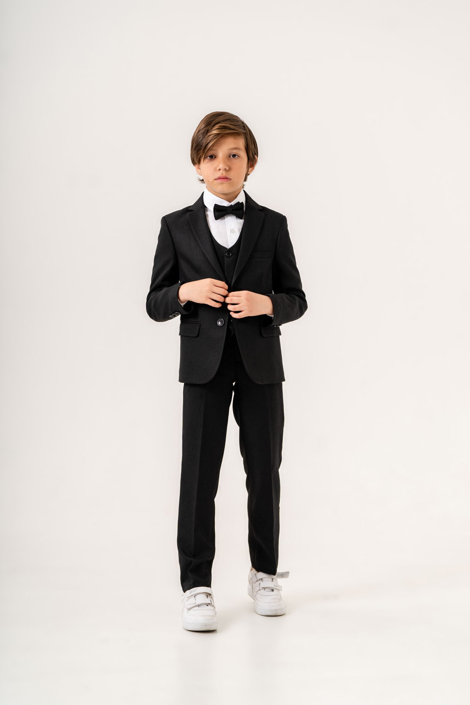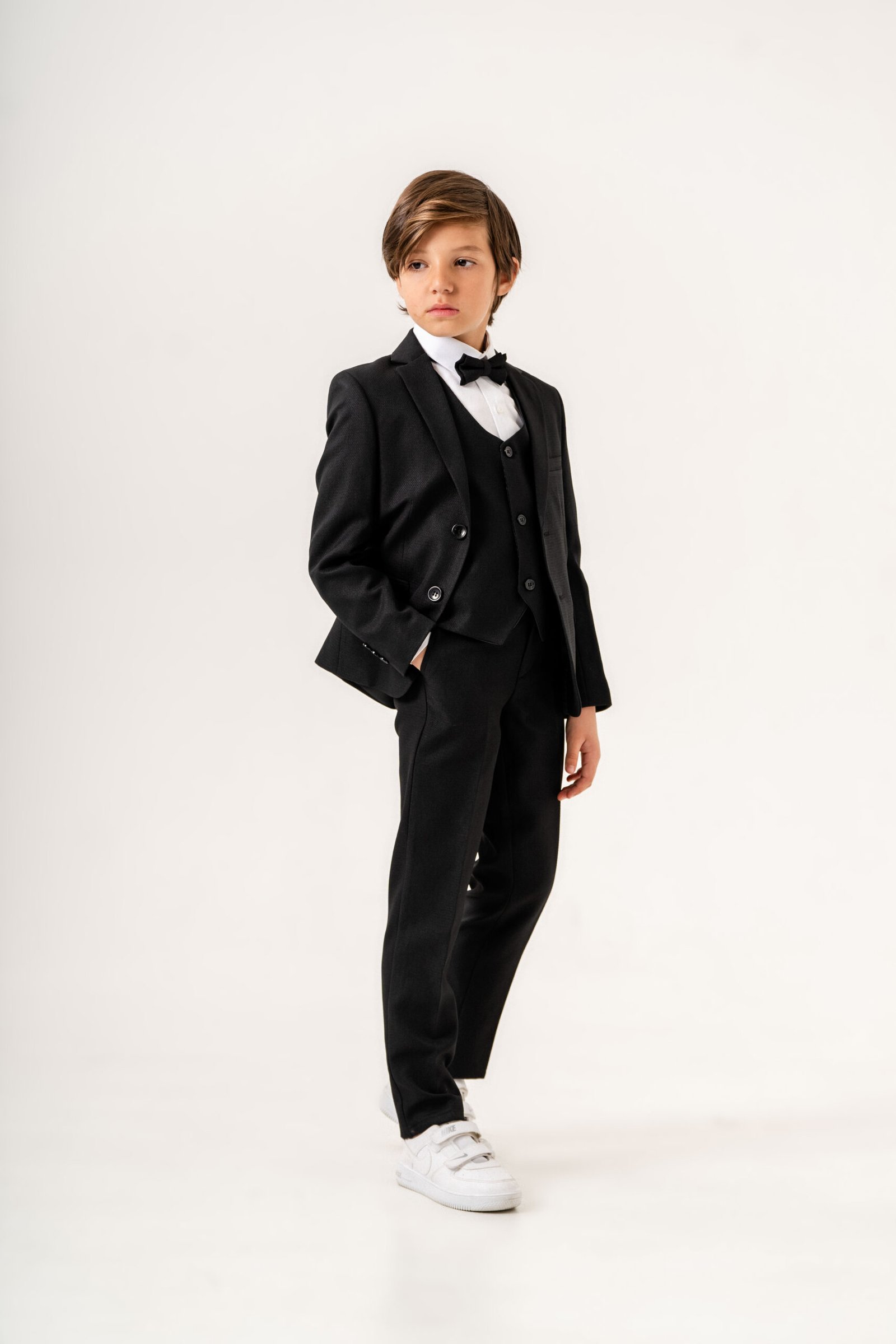 This elegant 5-piece formal suit set is designed for young gentlemen who appreciate style and comfort. Perfect for weddings, ceremonies, parties, and special occasions.