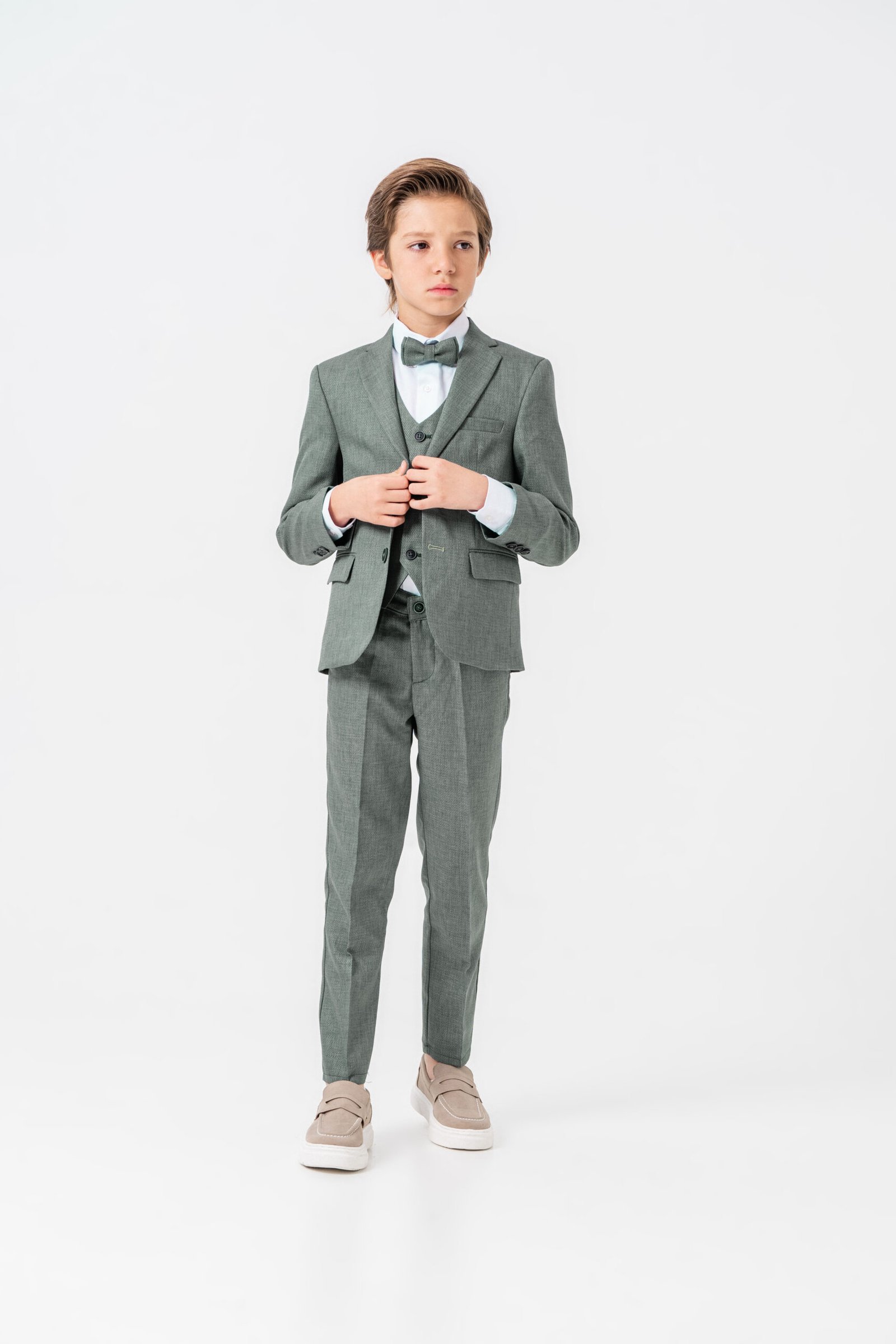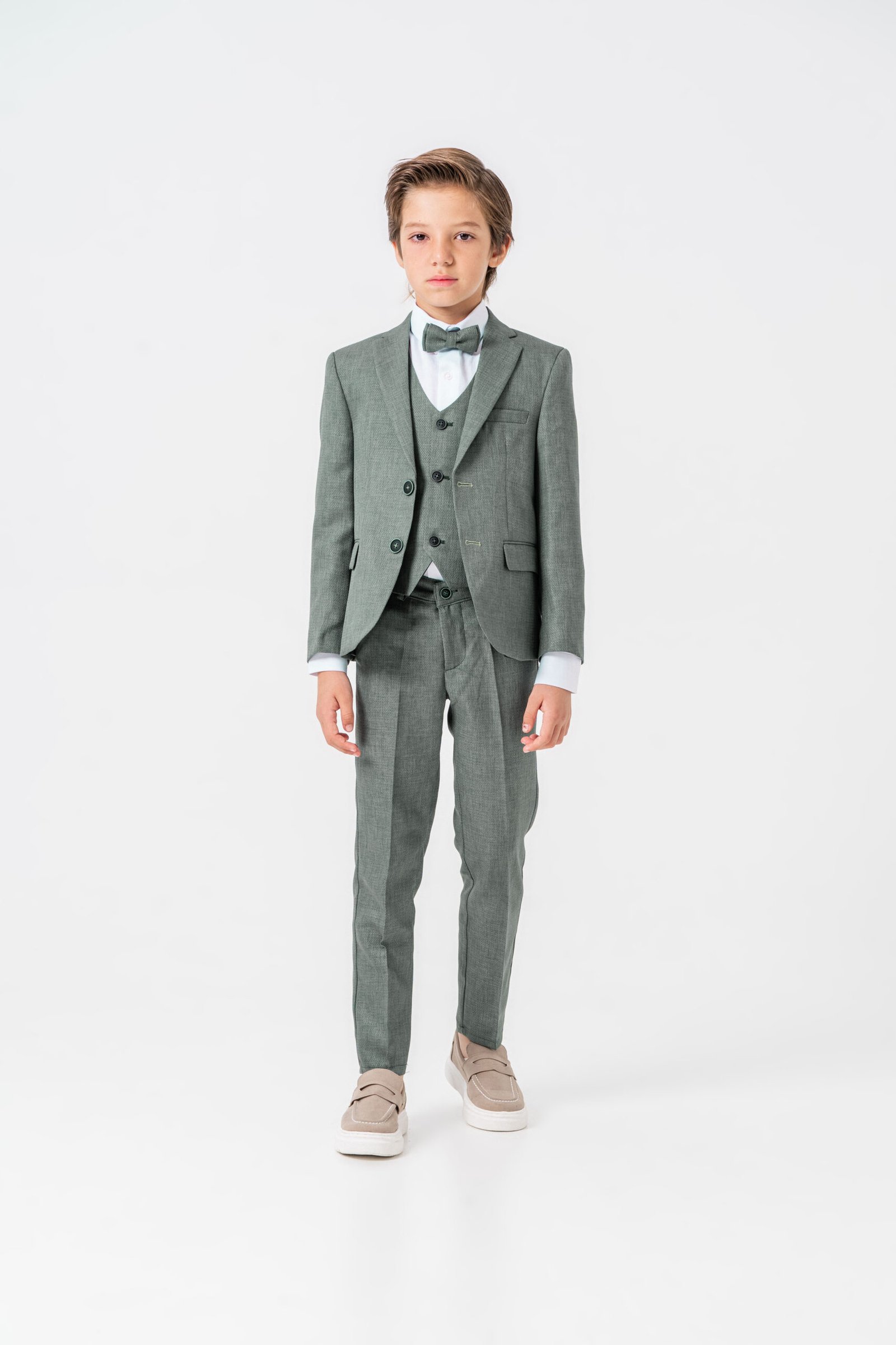 This elegant 5-piece formal suit set is designed for young gentlemen who appreciate style and comfort. Perfect for weddings, ceremonies, parties, and special occasions.