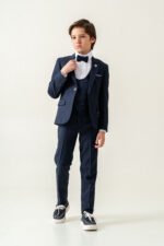 The set includes a tailored blazer, double-breasted vest, classic white shirt, matching trousers, and a bow tie for a complete sophisticated look. Crafted from premium-quality fabric, it ensures comfort, durability, and a sharp modern silhouette.