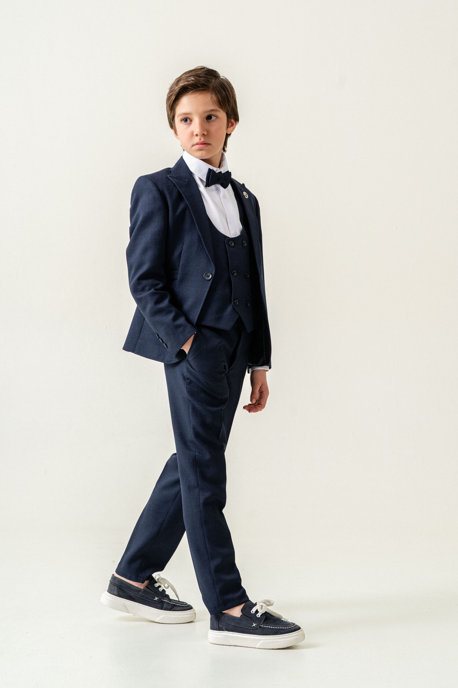 This elegant 5-piece formal suit set is designed for young gentlemen who appreciate style and comfort. Perfect for weddings, ceremonies, parties, and special occasions.