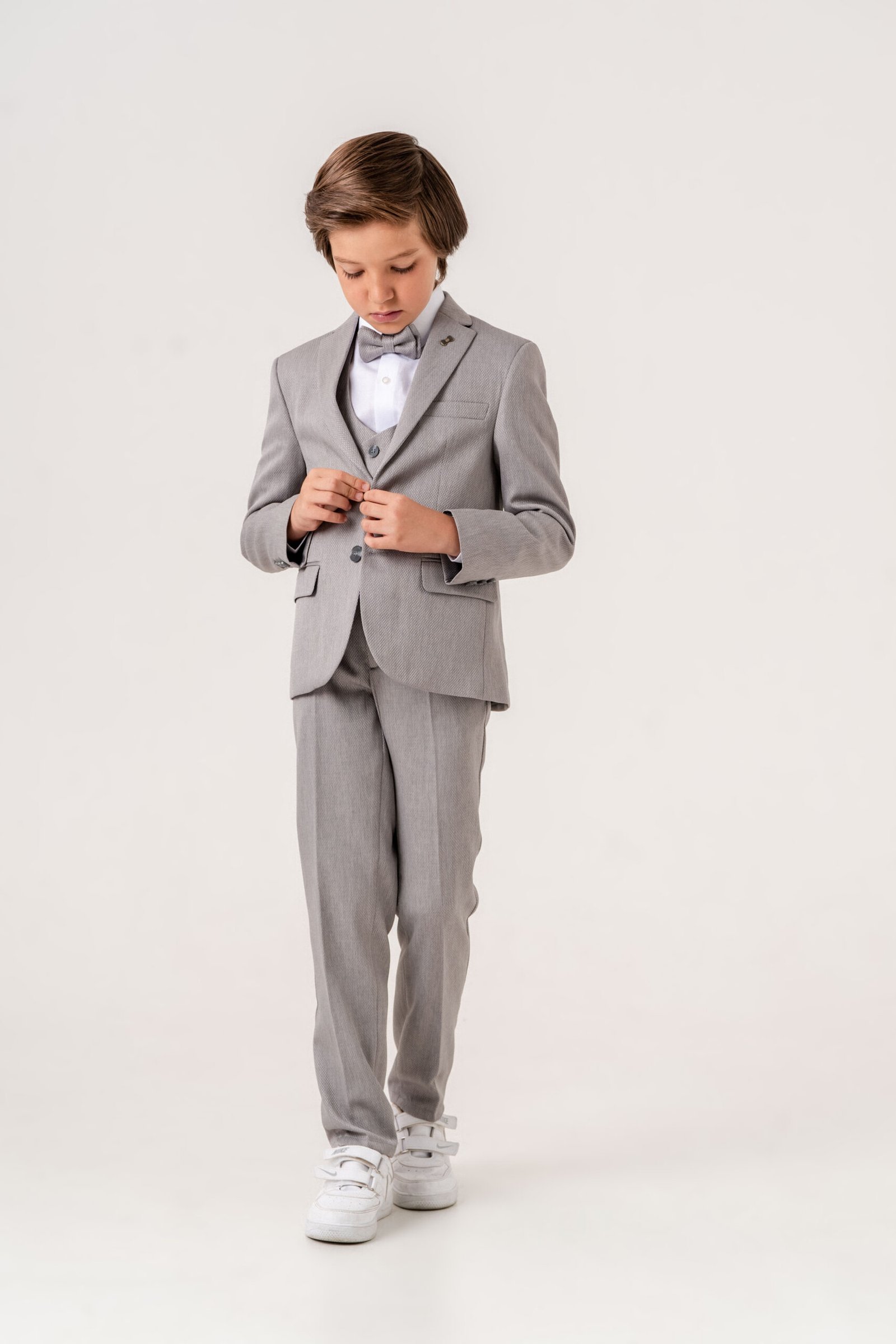 This elegant 5-piece formal suit set is designed for young gentlemen who appreciate style and comfort. Perfect for weddings, ceremonies, parties, and special occasions.